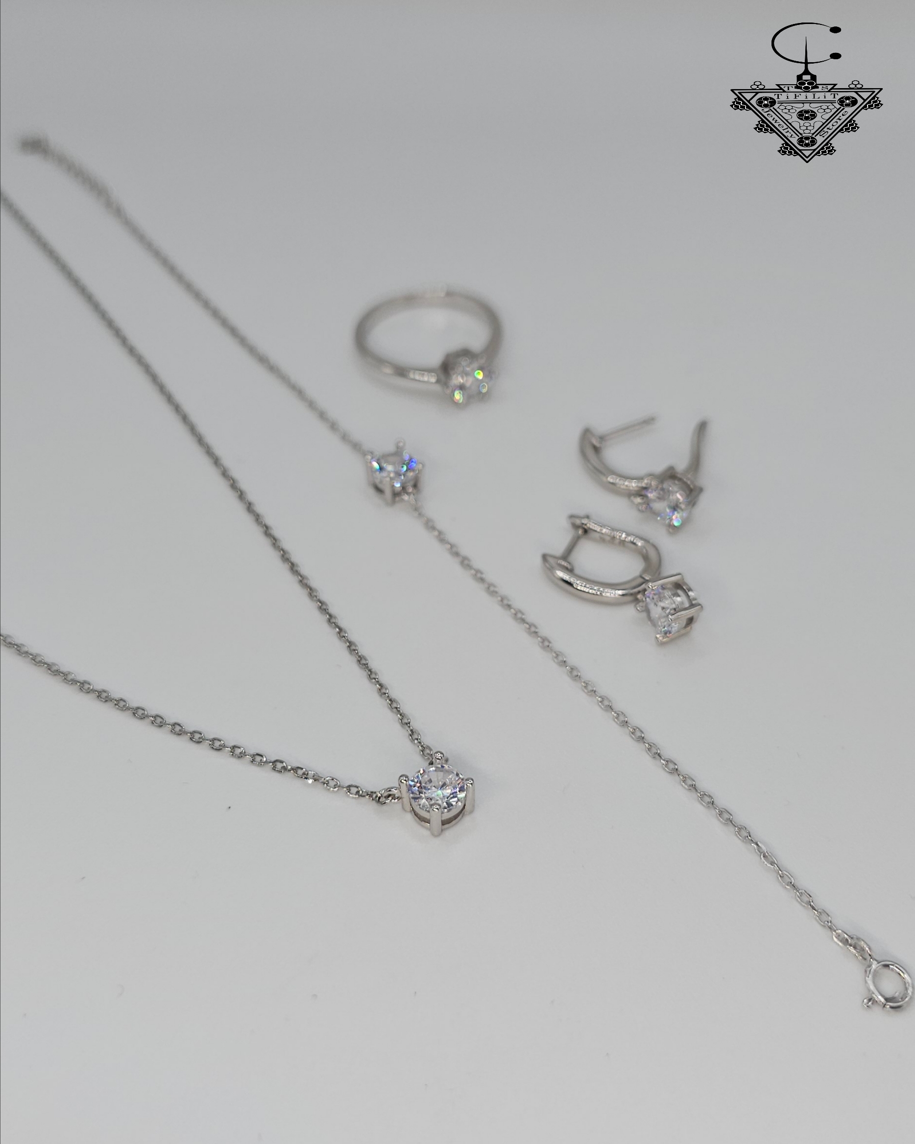Experience refined elegance with this modern silver jewelry set, beautifully designed to capture the brilliance of diamonds through the sparkle of zirconia stones. Each piece — the necklace, bracelet, earrings, and ring — is delicately handcrafted from Silver 925, with a total weight of 12 grams.