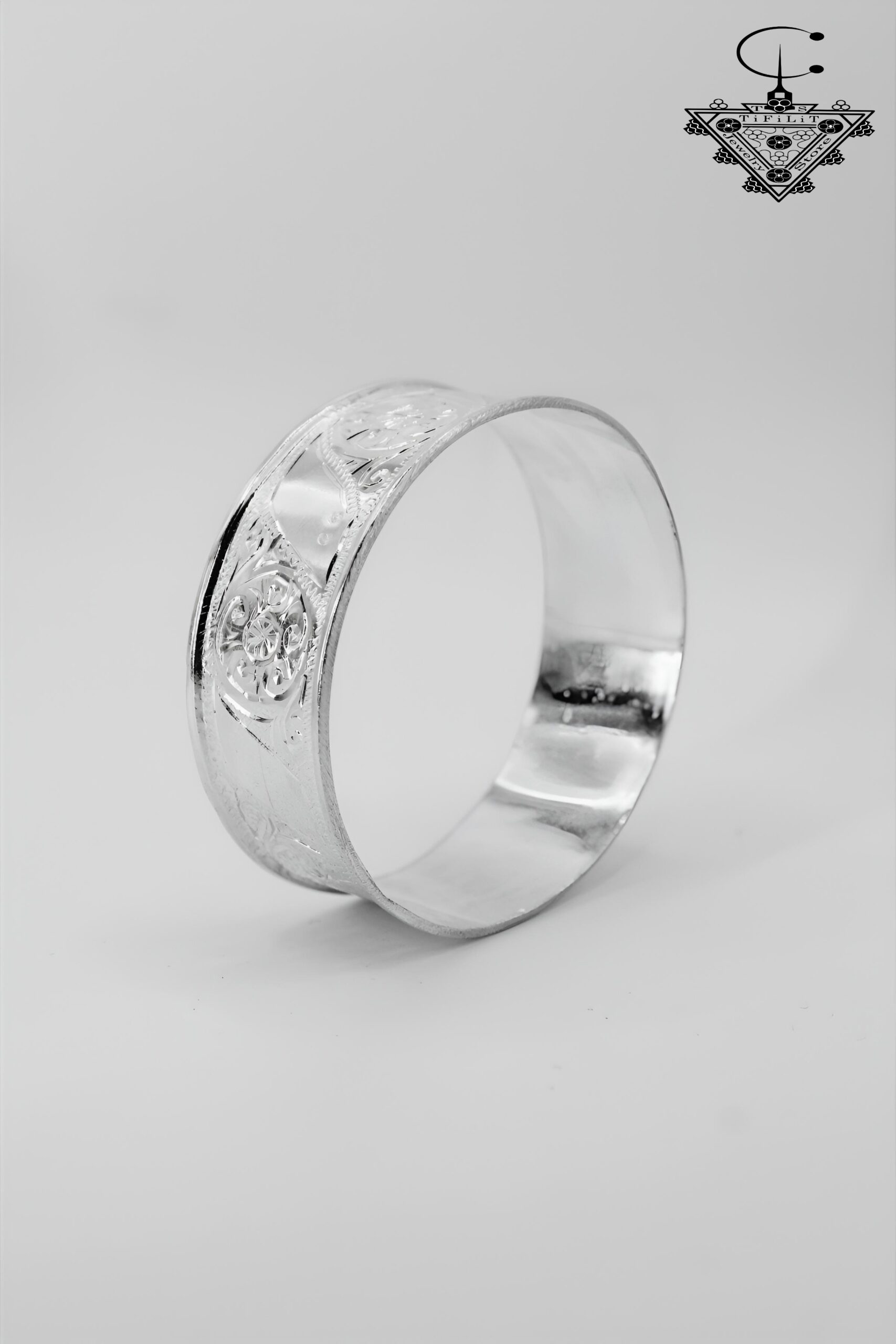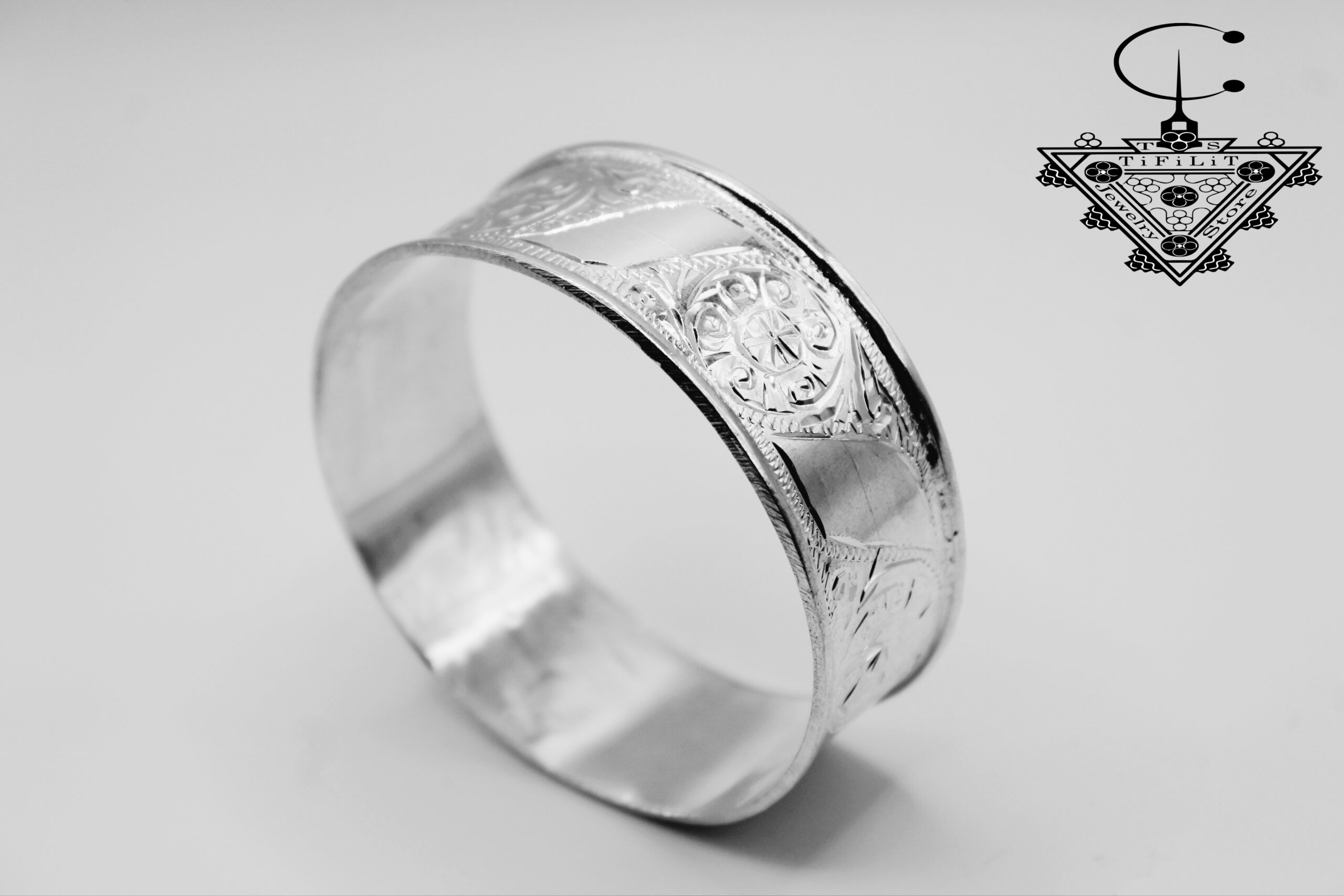 Handmade Amazigh silver bangle crafted from Silver 800, weight ~20g. Features traditional Berber patterns and authentic cultural craftsmanship. A timeless piece that carries heritage and elegance.