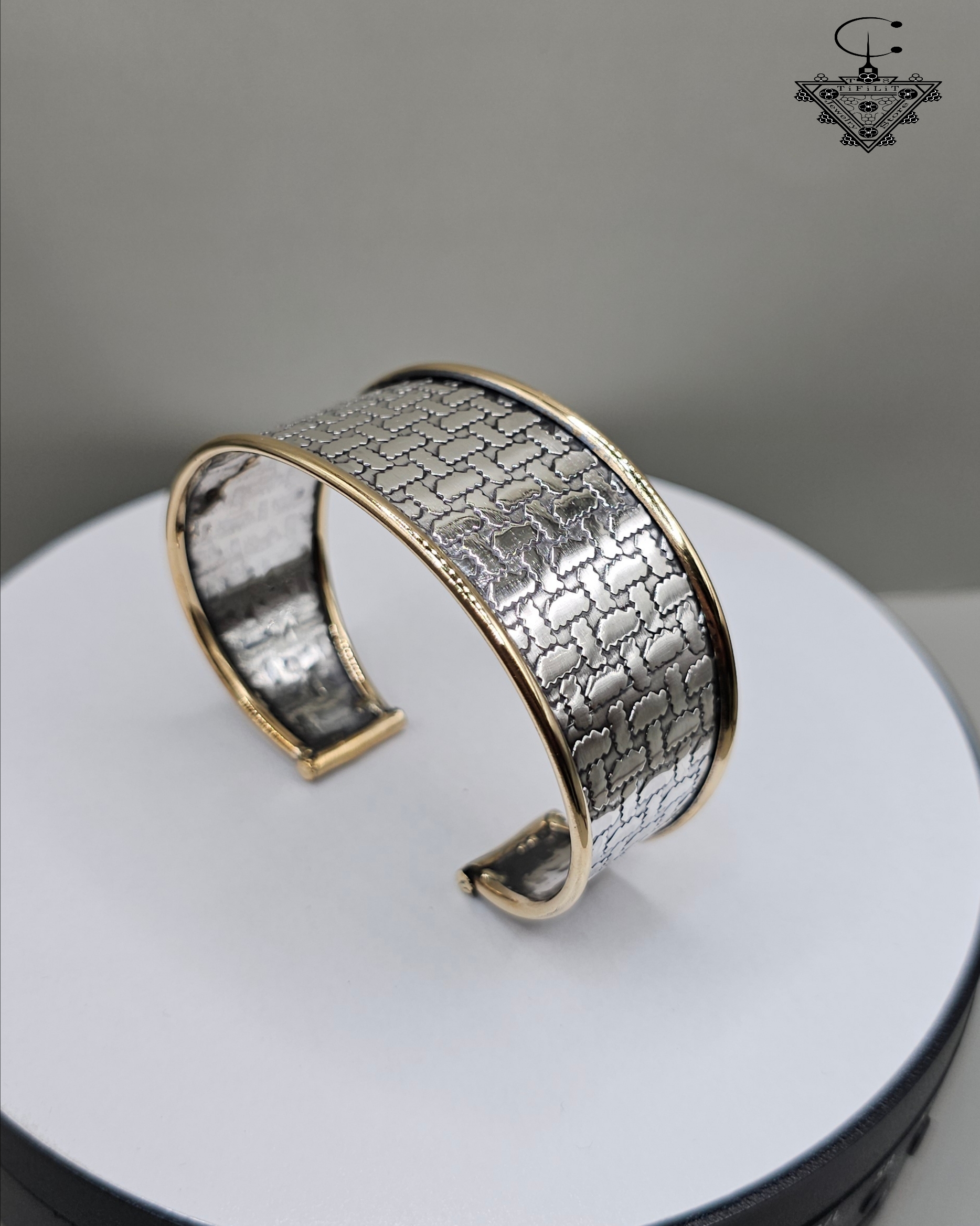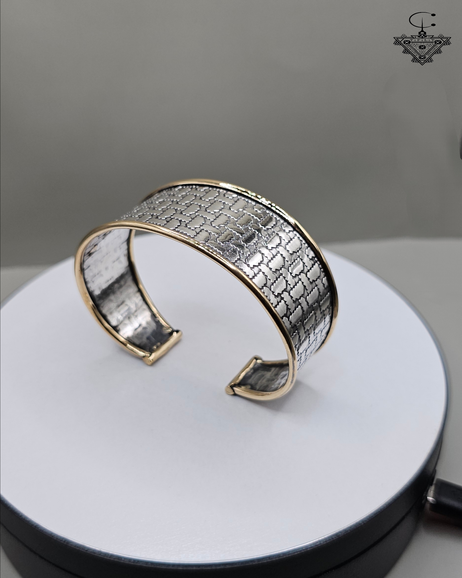 With a weight of 24 grams, the bracelet feels solid and substantial on the wrist while still being comfortable for daily wear. The geometric brick-inspired pattern gives the piece a modern architectural look, while the handmade finish preserves its authentic, artisanal soul.